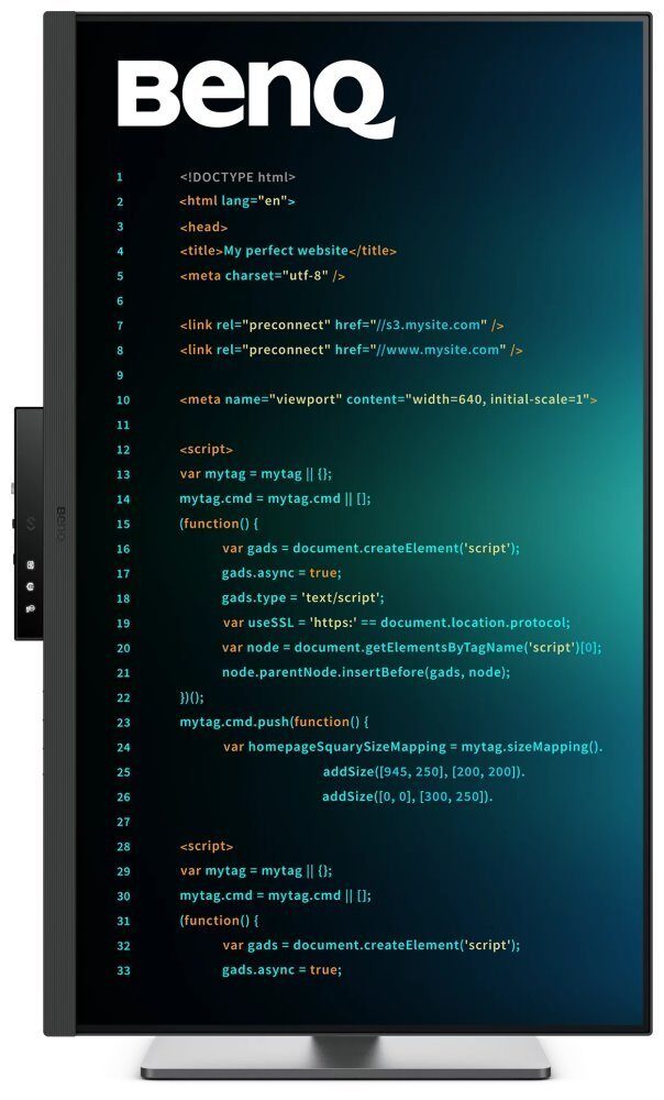 Monitor BenQ RD320U má elegantní design s tenkými rámečky, které maximalizují zobrazovací plochu. Ergonomický stojan umožňuje nastavení výšky, náklonu a otočení pro maximální pohodlí při práci. Monitor je navíc kompatibilní s VESA držákem, což usnadňuje montáž na zeď nebo rameno.