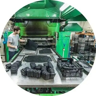 Vysoce odolná pryž zajišťuje kobercům vysokou pružnost, která zabezpečí při ohýbání (např. při skladování), že se koberce roztáhnou opět do původního tvaru.