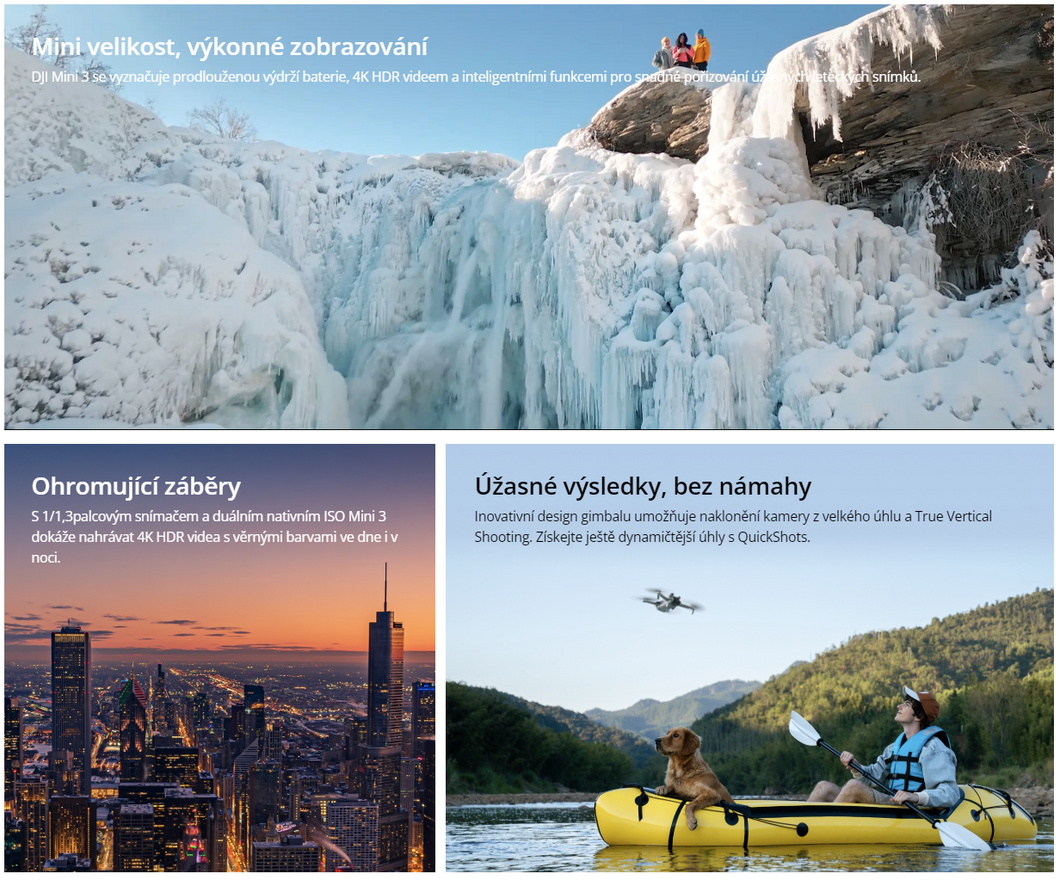 Technické specifikace pro produkt DJI Mini 3 (DJI RC) se mohou změnit bez výslovného upozornění. Obrázky pro produkt DJI Mini 3 (DJI RC) mají pouze informativní charakter.