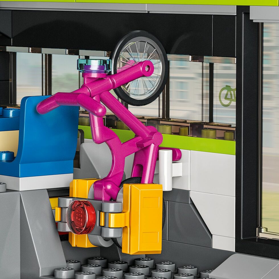 Prémiový model expresního vláčku od LEGO® City Model LEGO® Powered Up se skládá z aerodynamické lokomotivy s funkčními světlomety a jídelního a osobního vozu. Nechybí ani nástupiště. |