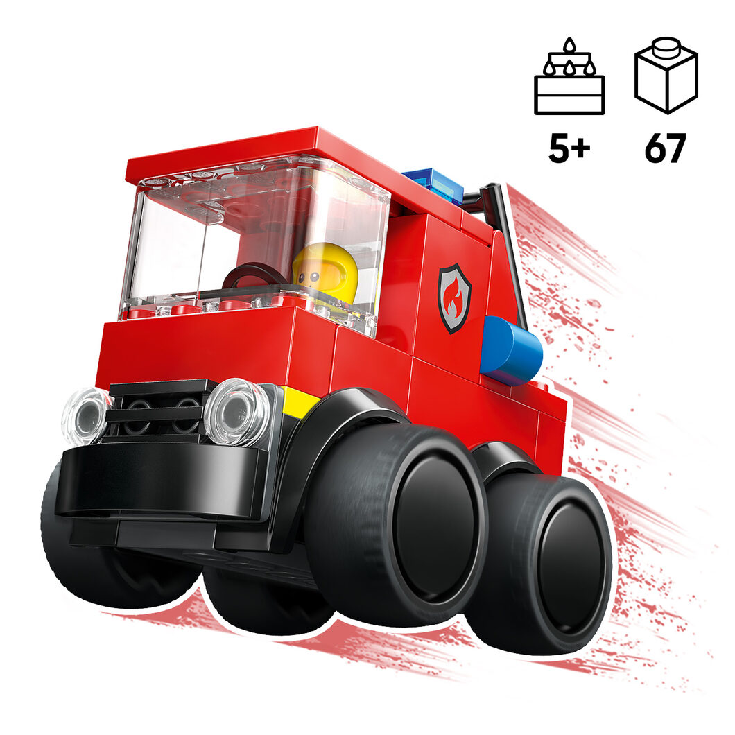 - SNADNO SESTAVITELNÉ VOZIDLO NA HRANÍ – Tato mini stavebnice obsahuje vše, co malí stavitelé potřebují k vytvoření vlastního Hasičského auta, a minifigurku LEGO® City Autíčka
