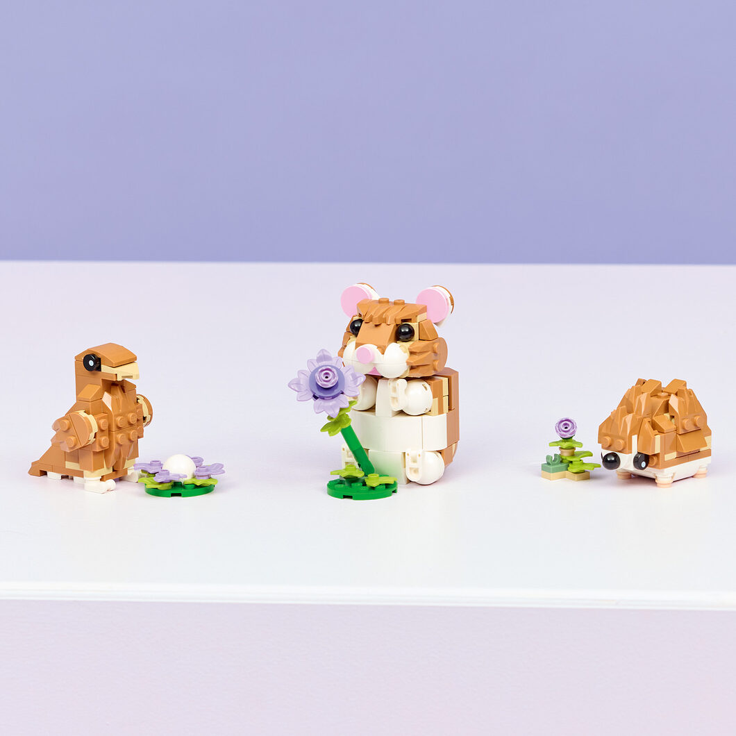 Holky a kluci od 7 let, kteří milují zvířata, si se stavebnicí LEGO® Creator 3 v 1 Roztomilý křeček s květinou (31376) užijí spoustu zábavy při hraní na zábavné příběhy. Tato rozkošná zvířecí stavebnice nabízí 3 různé možnosti sestavení ze stejné sady kostek. Děti si můžou postavit křečka s pohyblivou hlavou a předníma nohama a fialovou květinou. Model pak můžou přestavět na ježka s květinou nebo pohyblivého orla s vejcem v hnízdě. A když model dokončí a dohrají si, můžou si jej vystavit jako roztomilou dekoraci na poličce nebo na stole.