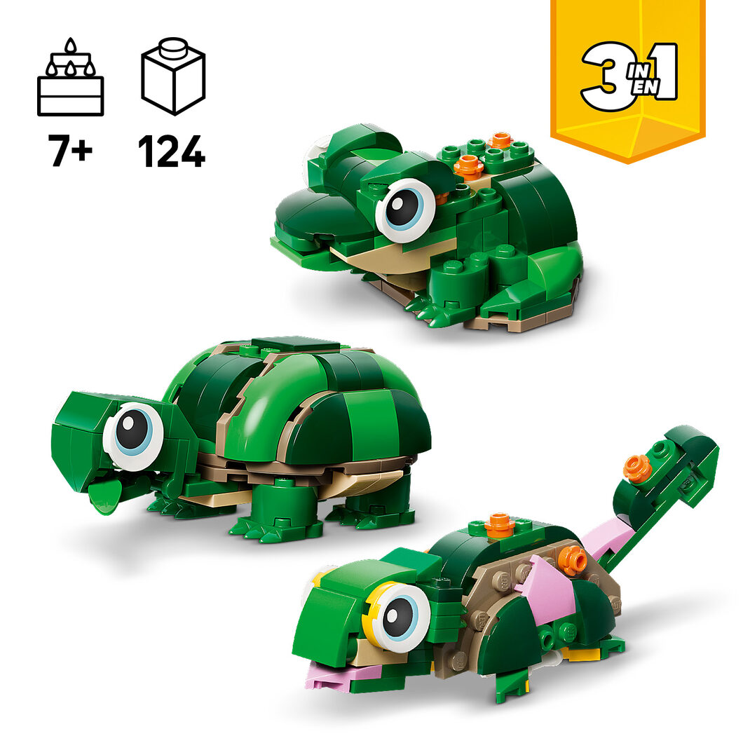 - HRAČKA 3 V 1 PRO DĚTI – Se stavebnicí LEGO® Creator 3 v 1 Želva s leknínem (31377) si holky a kluci od 7 let postaví a přestaví 3 roztomilé figurky zvířátek ze stejné sady kostek
