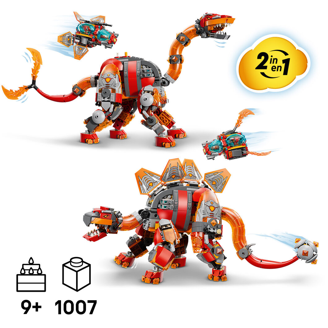 - 2 MOŽNOSTI STAVĚNÍ V 1 BALENÍ – Děti si vyberou, jestli postaví brontosaura s dvojitým ocasem, který se zrodil z lávy, nebo obrněného stegosaura s ohnivým ocasem, přičemž každý z nich má vlastní záložní vesmírnou loď