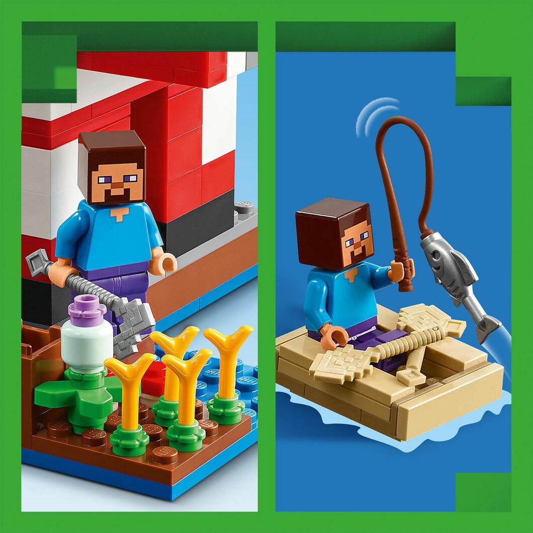 - Autentické detaily – Mezi herními doplňky LEGO® Minecraft® najdete rybářský prut, tresku, motyku, netheritový meč, misku, loďku s vesly, truhlu, pec, pracovní stůl, knihovnu, chléb a postel