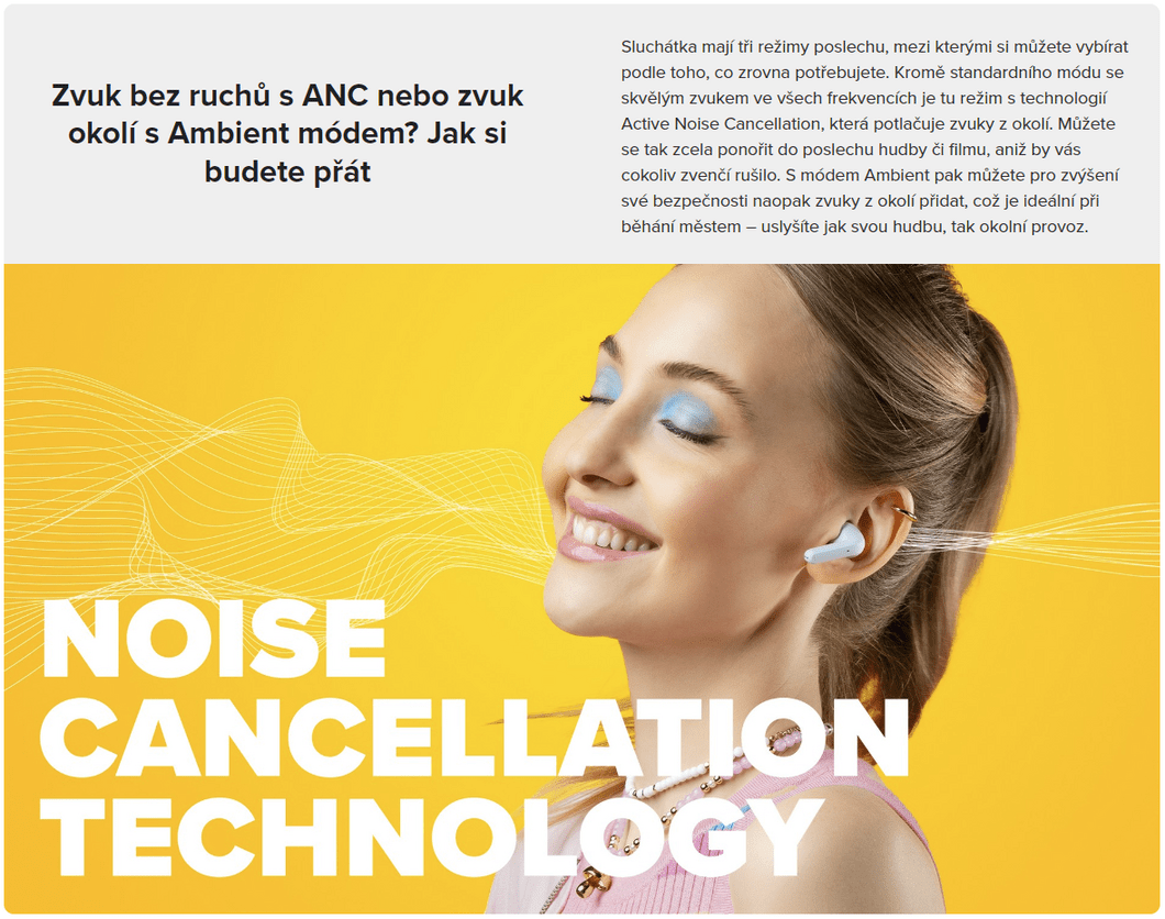 | Funkce: | Přepínání skladeb Přijímání hovorů Aktivní potlačení hluku (ANC) Hlasový asistent S aplikací ION ENC Ambient mód |
