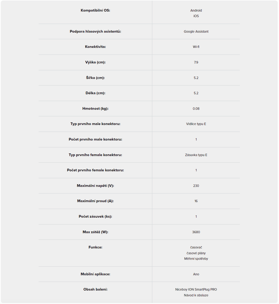 Technické specifikace pro produkt Niceboy ION SmartPlug PRO chytrá zásuvka se mohou změnit bez výslovného upozornění. Obrázky pro produkt Niceboy ION SmartPlug PRO chytrá zásuvka mají pouze informativní charakter.