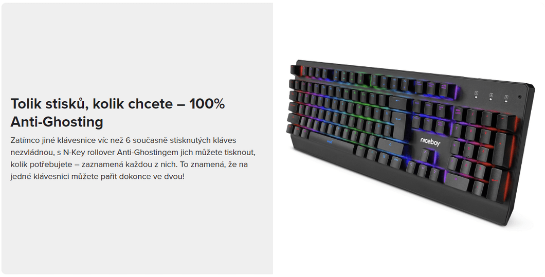 | Vlastnosti | ANTI-GHOST, Multimediální klávesy, Podpora systému NKRO, Podsvícení |