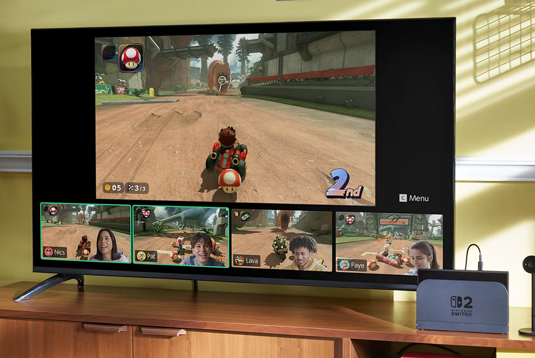 S funkcí GameChat a vestavěným mikrofonem konzole Nintendo Switch 2 můžete snadno zahájit hlasový chat kdykoliv a kdekoliv. Ať už hrajete v režimu TV, na stole nebo v ruce, vaši přátelé jsou vám vždy nablízku.