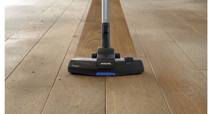 Tryska TriActive vám umožňuje vysát podlahu jedním pohybem 3 různými způsoby Tryska TriActive umožňuje vysávání podlahy jedním pohybem třemi různými způsoby: 1) Pomocí speciálně navrženého příslušenství jemně zvedne štětiny koberce, aby se důkladně odstranil prach. 2) Velké otvory na přední straně nasávají větší částice nečistot. 3) Sbíráte prach a nečistoty podél nábytku a stěn pomocí vzduchových kanálů vlevo a vpravo. |