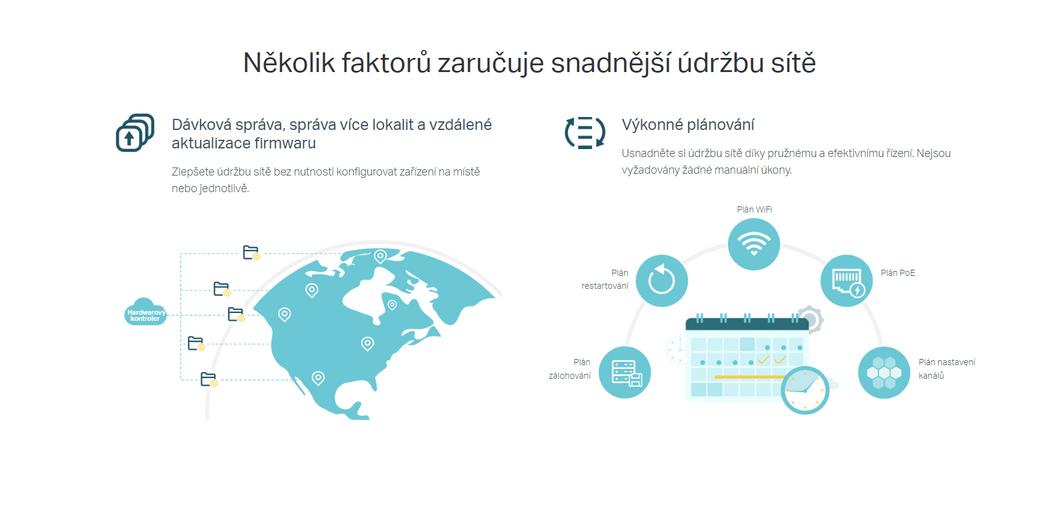 - Snadná údržba sítě díky dávkové správě, správě více lokalit a vzdáleným aktualizacím firmwaru.