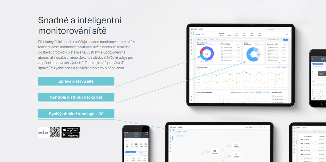 - Kompatibilita: TP-Link Omada access pointy, JetStream switche a SafeStream routery