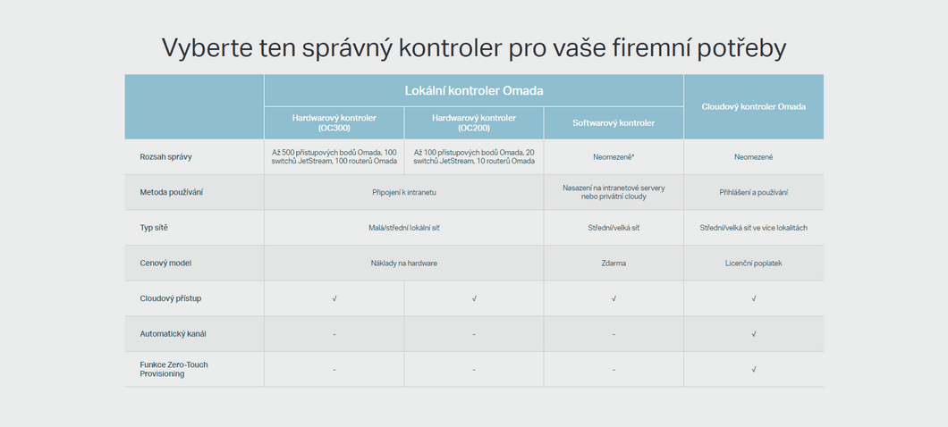 * Platí pro SW kontroler Omada v5.0 a vyšší. Skutečný rozsah funkcí správy závisí na hardwarových specifikacích počítače/serveru.