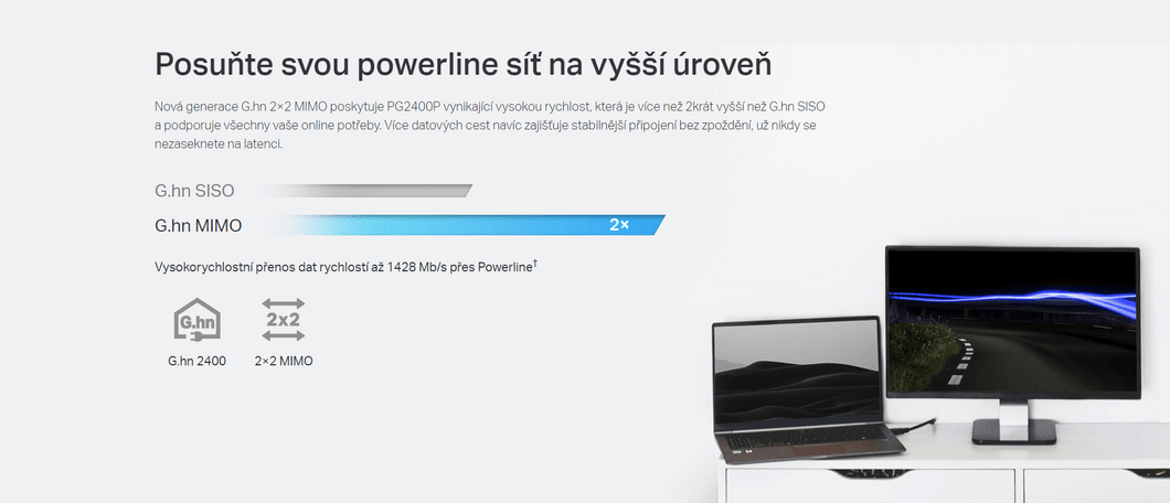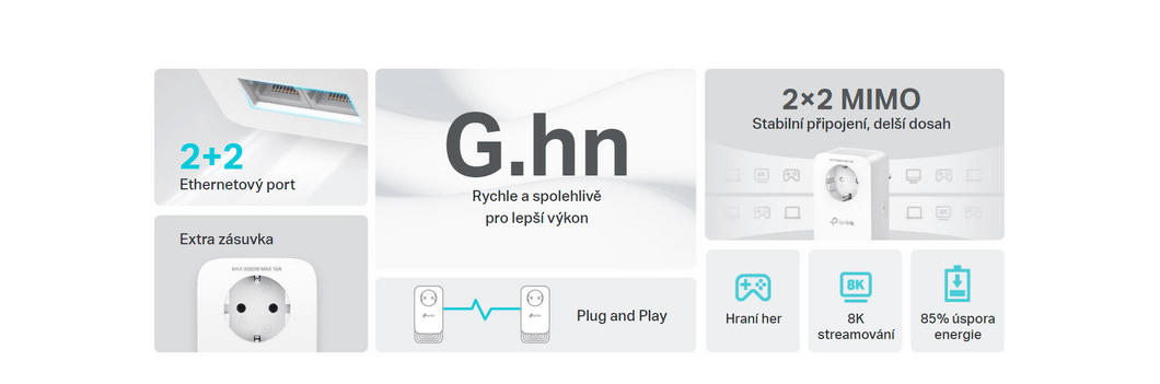 - Pokročilý protokol G.hn MIMO - Rychlejší, stabilnější, větší kapacita.