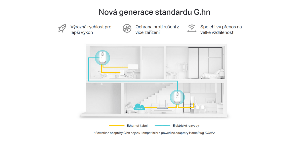 - [POZNÁMKA] Powerline adaptéry G.hn nejsou kompatibilní s powerline adaptéry HomePlug AV/AV2.