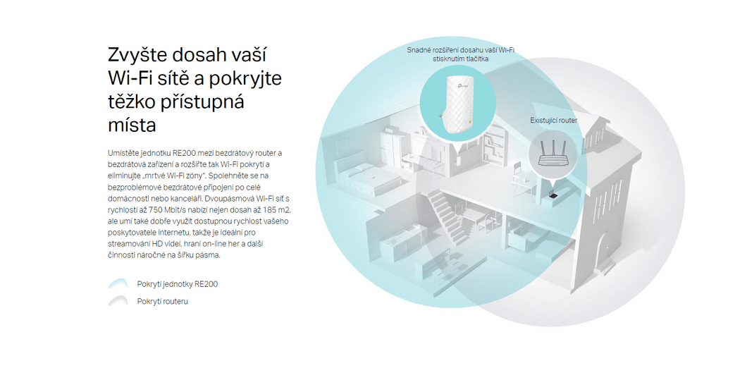 Potřeboval jsem ve svém RD (třípodlažním) přenést signál z modemu i na vzdálená místa v domě a připojit tak např. STB nebo SmartTV bez kabelového rozvodu, do jehož instalace se mi opravdu nechtělo. Řešení pomocí PowerLINK se ukázalo jako problematické pro nejistý přenos signálu do částí napájených z odlišných fází sítě. Zakoupený TP-LINK RE200 využívá stávající místní WiFi síť (2,4G) a bezproblémově a kvalitně převádí signál přes rozhraní RJ45 k připojovanému zařízení. Navíc, jelikož jde o opakovač, v místě instalace výrazně zvýší úroveň signálu WiFi sítě (nehledě na možnost rozšíření další místní sítí v 5G). Překvapilo mě, že takovýto dokonalý výrobek má dosud jen jediné kladné hodnocení Vašeho zákazníka. Rád bych toto zařízení chtěl doporučit i ostatním Vašim zákazníkům, pokud mají obdobný problém, ale nenacházím na Vaší stránce způsob, jak to učinit.