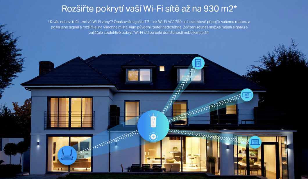 - Maximální pokrytí – rozšiřte dosah až na 1 115 m2.
