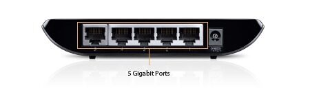 - 5 gigabitových portů RJ45 s podporou automatického vyjednávání a Auto MDI/MDIX