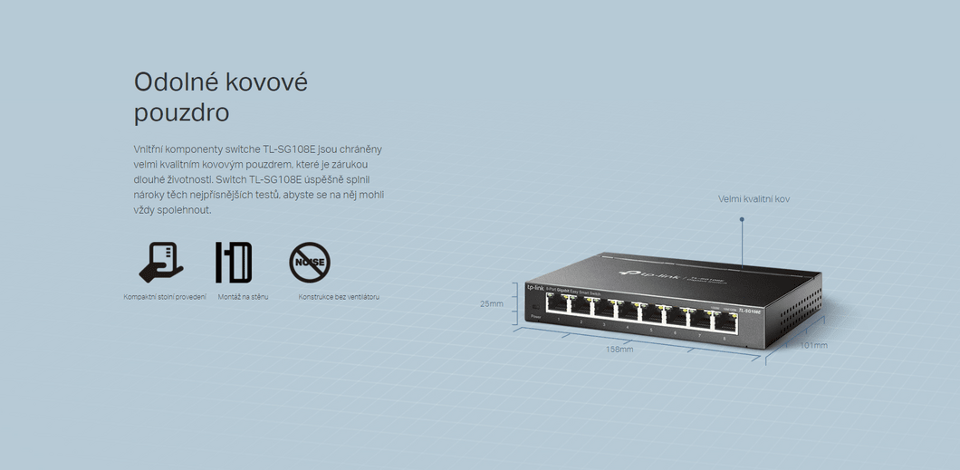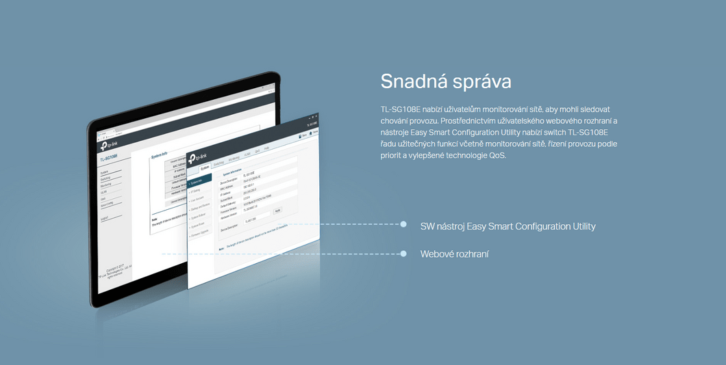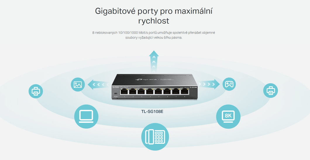 Technické specifikace pro produkt TP-Link TL-SG108E se mohou změnit bez výslovného upozornění. Obrázky pro produkt TP-Link TL-SG108E mají pouze informativní charakter.