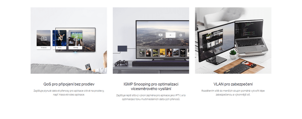| Funkce | PoE (Power over Ethernet) , QoS (Quality of Service) , VLAN |
