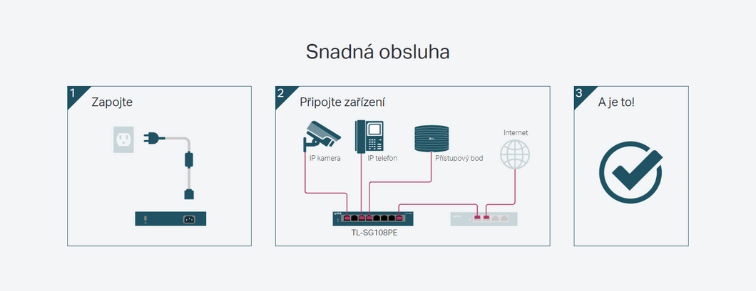 Technické specifikace pro produkt TP-Link TL-SG108PE se mohou změnit bez výslovného upozornění. Obrázky pro produkt TP-Link TL-SG108PE mají pouze informativní charakter.
