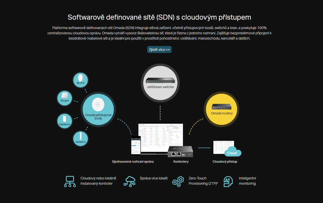 *Funkce ZTP (Zero-Touch Provisioning) vyžaduje použití cloudového kontroleru Omada. Na stránce www.tp-link.com/cz/omada-cloud-based-controller/product-list/ naleznete všechny modely podporované cloudovým kontrolerem Omada.