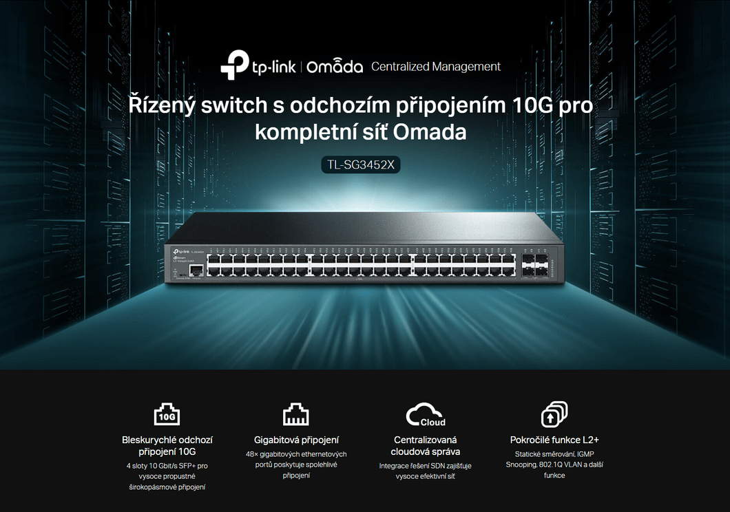 Technické specifikace pro produkt TP-Link TL-SG3452X se mohou změnit bez výslovného upozornění. Obrázky pro produkt TP-Link TL-SG3452X mají pouze informativní charakter.