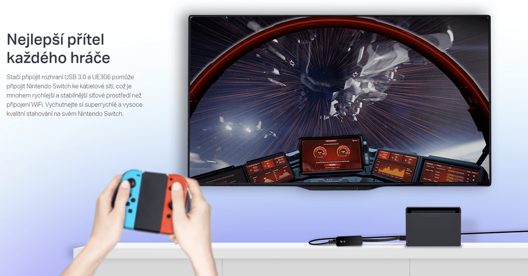 - Kompatibilní s Nintendo Switch: Užijte si hraní s přáteli a rychlé stahování po připojení k dokovací stanici Nintendo Switch a přidání gigabitového ethernetového připojení