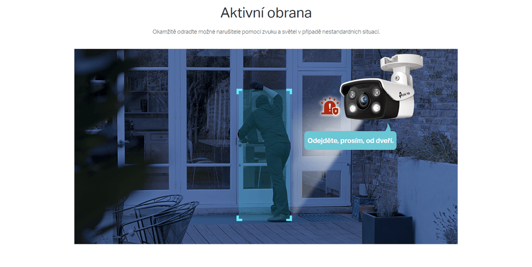 - Aktivní obrana: Okamžitě odraďte možné vetřelce pomocí sirény a světel v případě neobvyklých situací.