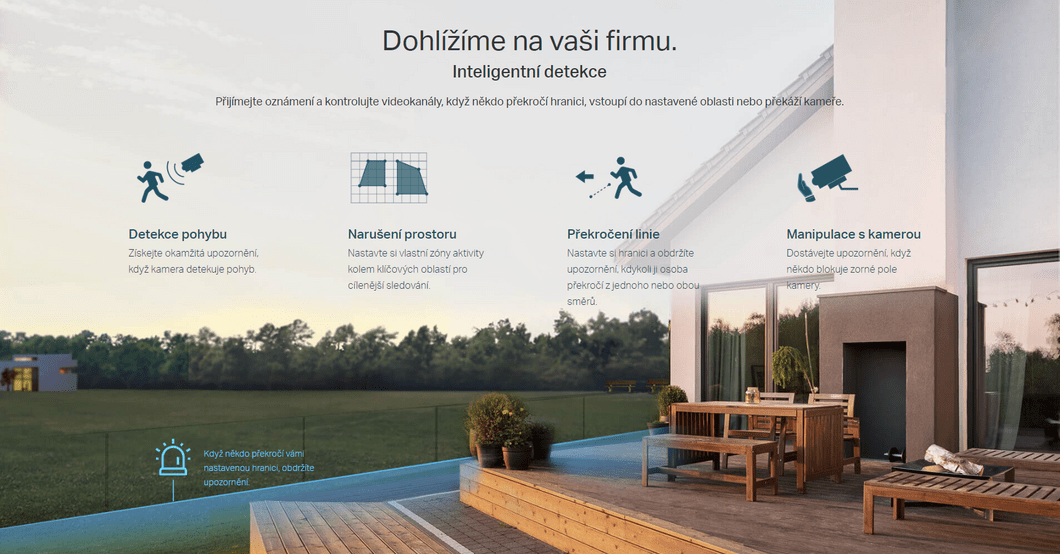 Kamera VIGI inteligentně detekuje aktivity, neprodleně vás informuje a automaticky reaguje s využitím chytré detekce a obousměrné zvukové komunikace.