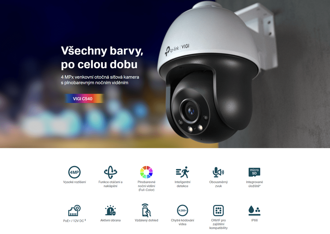 Technické specifikace pro produkt TP-Link VIGI C540 se mohou změnit bez výslovného upozornění. Obrázky pro produkt TP-Link VIGI C540 mají pouze informativní charakter.