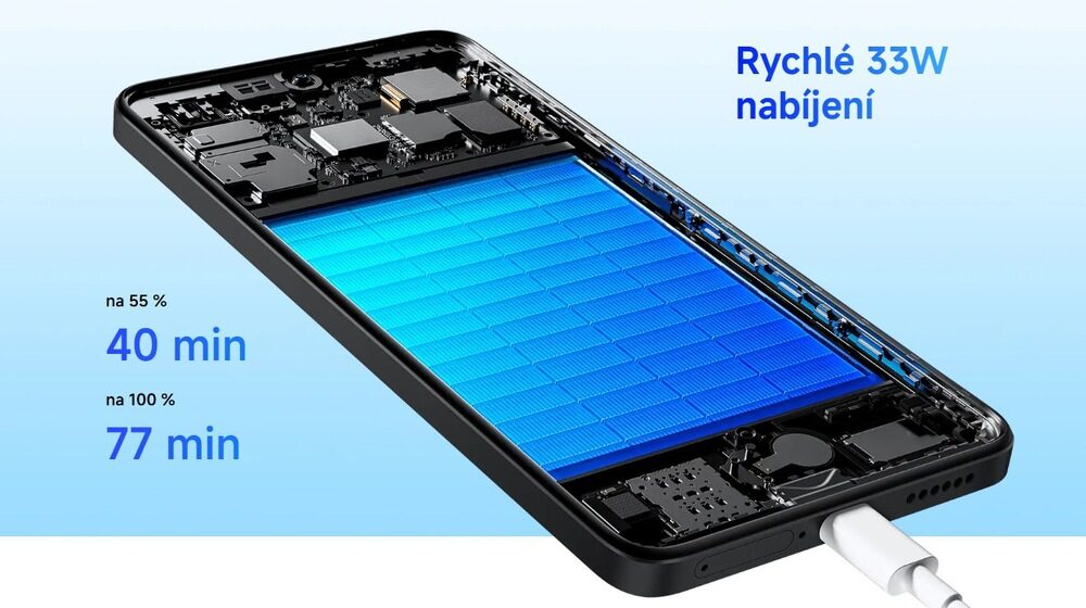 Baterie s dlouhou výdržíVysokokapacitní 5 500mAh baterie vám zajistí celodenní výdrž, zatímco 33W rychlé nabíjení znamená, že nebudete muset čekat dlouhé hodiny na doplnění energie. |