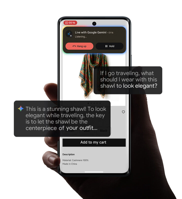 Umělá inteligence Gemini od Googlu Integrovaná AI Gemini od Googlu pomáhá s vyhledáváním informací, zvyšuje produktivitu a usnadňuje každodenní práci s telefonem. |